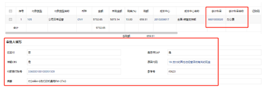 7、审批无误即可填写会计科目、摘要和相关付款事项等
