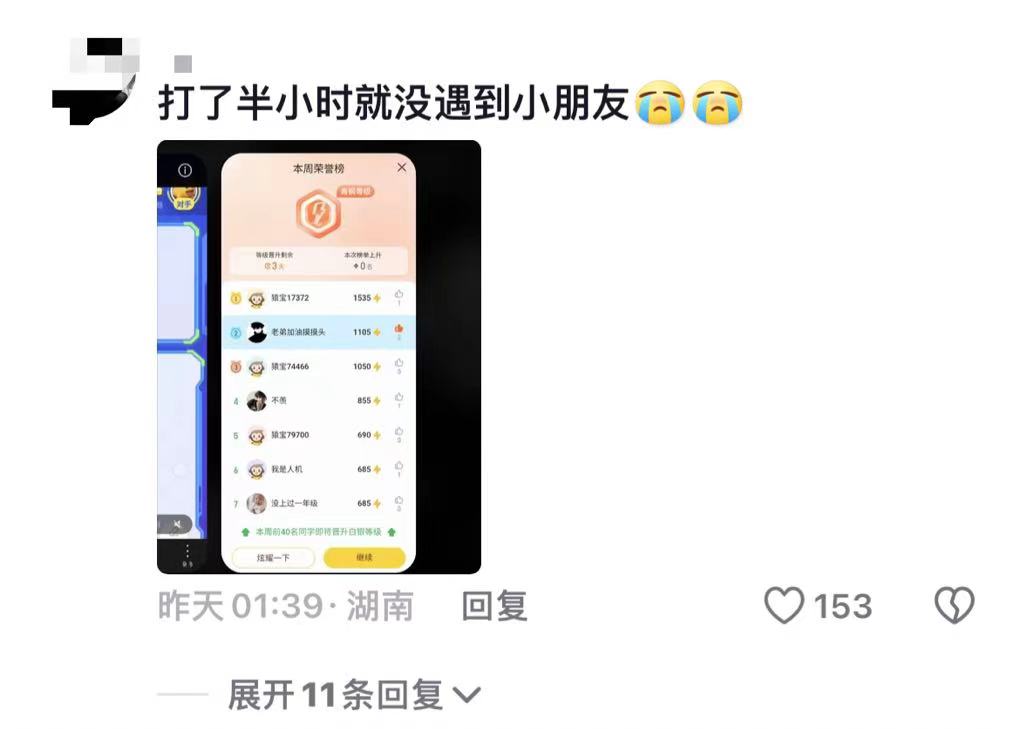 但也因为大量大学生的参赛,现在想匹配到小学生体验“虐菜”已经非常困难。“打了半个小时就没遇到小朋友”,可见小猿口算App里大学生选手之多。