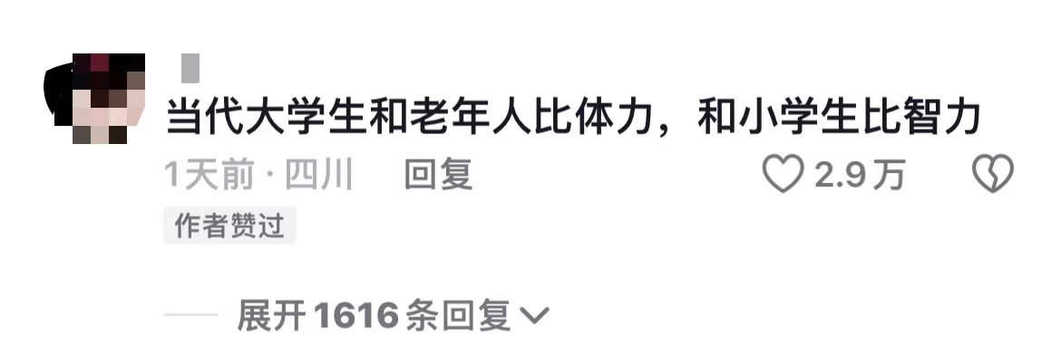 还有网友道出当代大学生的现状:和老年人比体力,和小学生比智力。