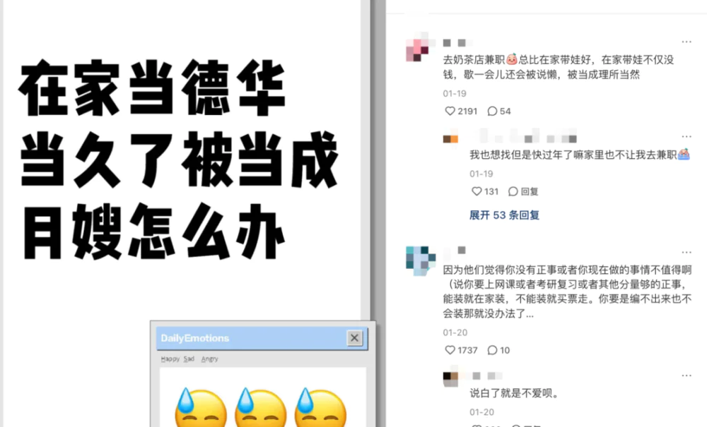 当互联网盛行“德华带娃”风潮之下,那些“未婚未育产后抑郁”“祖上留下来的奴才就是好用”的玩梗论调,真套用在现实生活里,只会让卢乔觉得毛骨悚然。