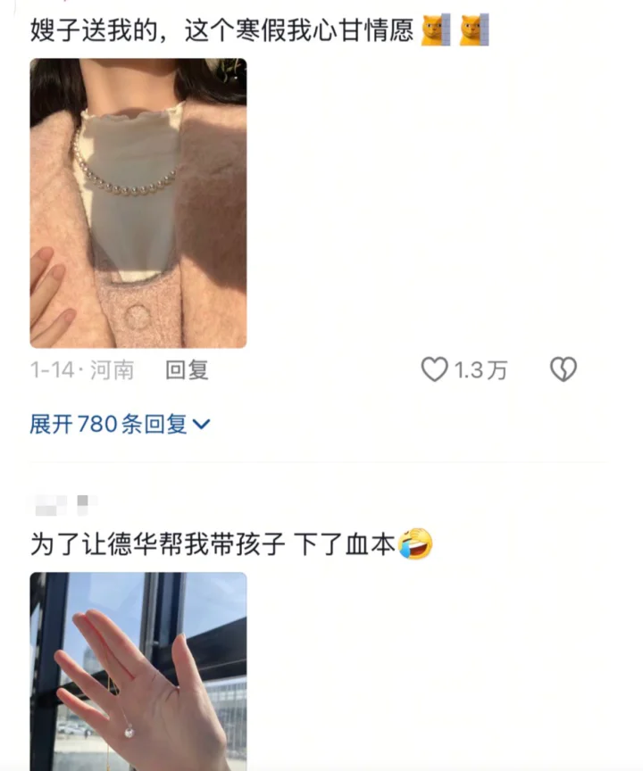 她常和同学自嘲自己是“嫂子房间的拾荒者”,嫂子只穿过一次就不想要还流行的衣服、孕前买的高跟鞋、只用了三分之一的贵妇面霜,一律都归她所有。时不时还能和哥嫂拉去吃顿好的改善生活,定期收到一两个属于她的首饰,连去哥哥家打车的钱都有嫂子报销。