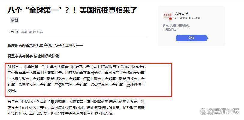 中美之间的溯源博弈已经超越双边范畴,演变成一场全球性的真相较量。白皮书以八个"全球第一"直击美国痛点:全球第一政治甩锅国、疫情扩散国、政治撕裂国、疫情动荡国、虚假信息国、溯源恐怖主义国。这些锋利的词汇背后,是对国际秩序公平性的深刻拷问。