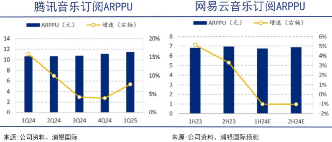 这一点从腾讯音乐的财报中已经得到作证。其在线音乐付费用户同比增长率从2020年第四季度的8.32%下滑至1.57%,同时,单个付费用户的平均收入增长率亦从2023年第三季度的6.19%降至2025年第一季度的2.7%。