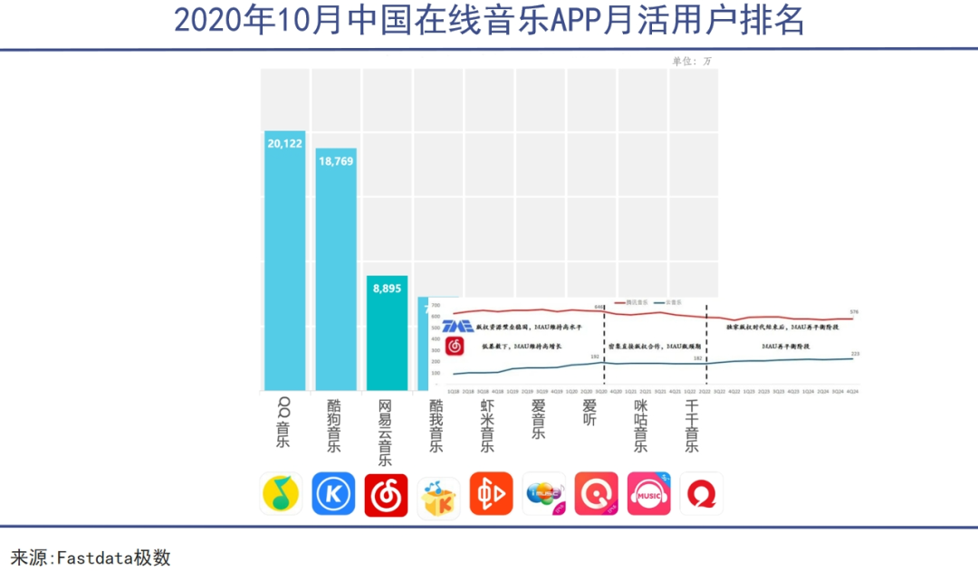 独家版权的时代已随着监管政策的变化迎来了终结,目前只有周杰伦等少数歌手还存在独家版权的情况,两家在线音乐平台的增长策略也随之出现了分化。
