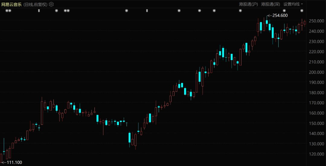 网易云音乐股价表现(自2025年2月至今)