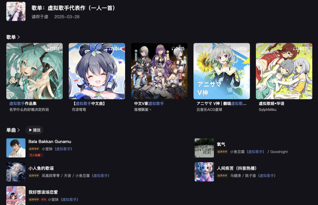 网易云音乐虚拟歌手部分内容