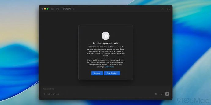 科技媒体9to5Mac7月16日发布博文,报道称OpenAI面向ChatGPT Plus订阅用户,向其开放了在macOS版ChatGPT应用中,使用Record Mode模式的权限。(IT之家)
