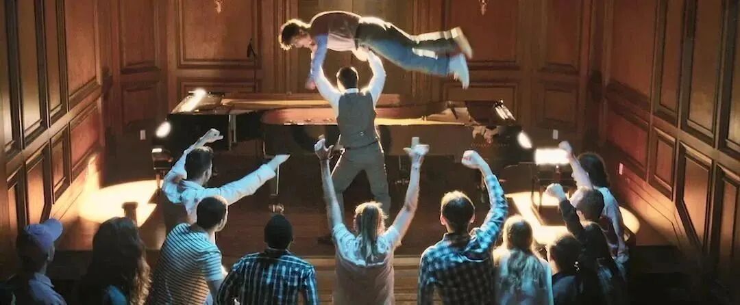 首先,片尾身穿湛蓝色燕尾服的郎朗用突破身体物理极限的空翻落在琴凳上,敲出琴键的最强音——柴可夫斯基的《第一钢琴协奏曲》。这个世界好赖他说了算,“无论天使还是魔鬼降临”(片中台词)。
