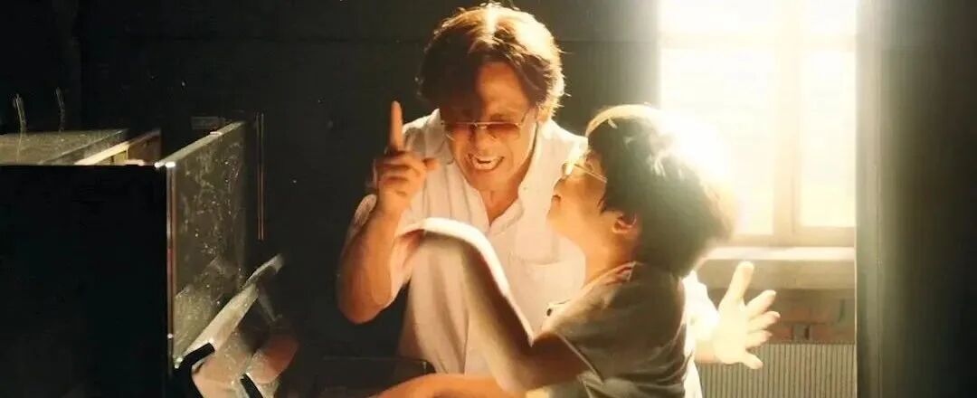 当然最表面的合题,片中几乎所有的钢琴曲演奏部分都不能拿来鉴赏,这就不是为了满足耳朵的愉悦感,它的躁动感就像子弹一样是为了配合角色的亢奋情绪以及大量、快速镜头的剪辑风格。要我说,无论肖邦还是柴可夫斯基,片中钢琴演奏的听感都是郎朗第二任老师欧亚(何赛飞 饰)痛苦却沉溺的风格,用三个字形容就是“打砸抢”。