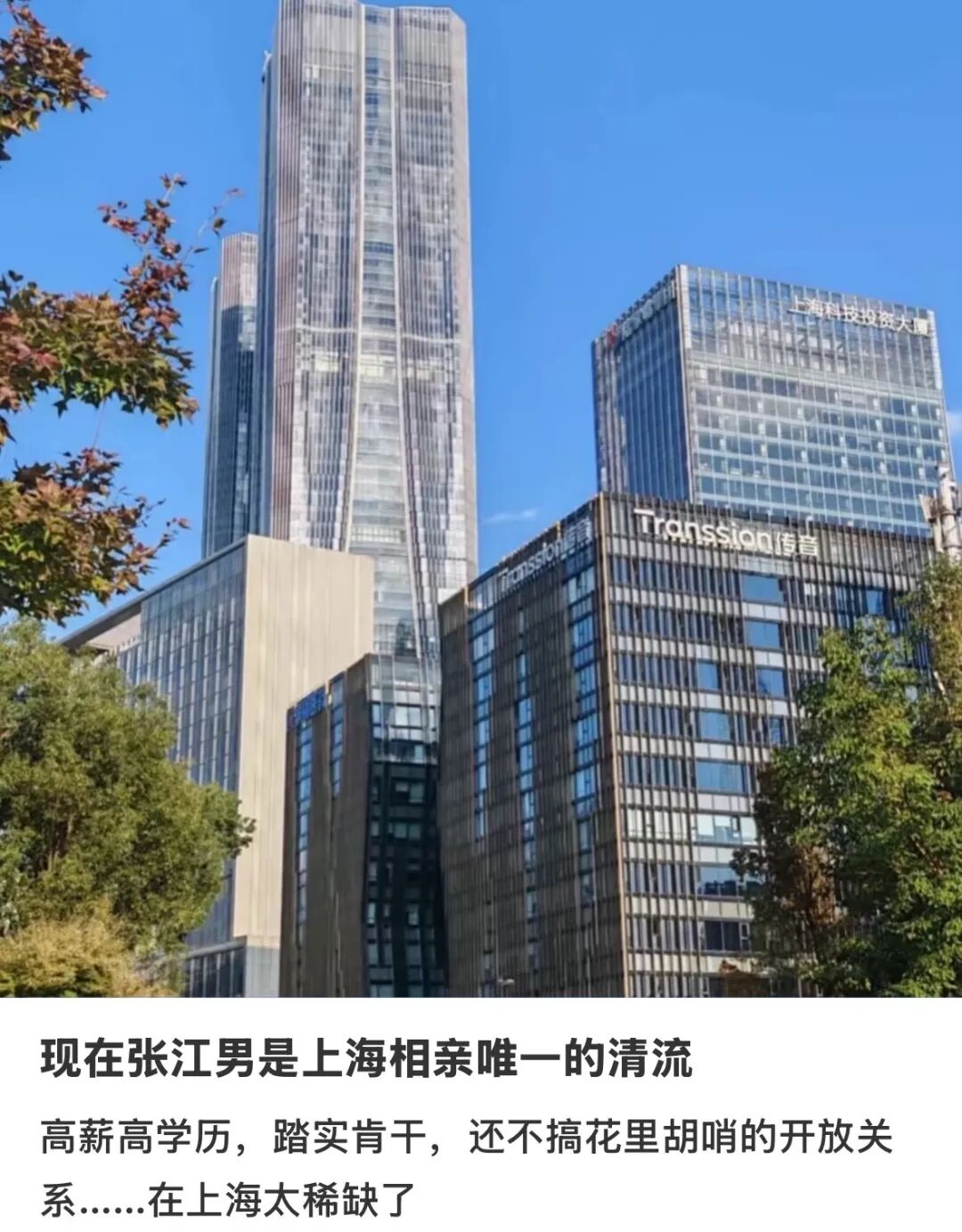 “如果你只是想在花花世界里遨游,那么肯定是静安更适合你;但如果你想找个人好好过日子,那么大概率在张江能遇到合适的人。”