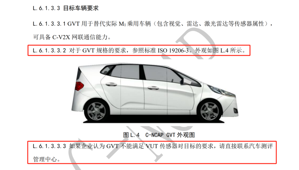 我们不妨翻看C-NCAP 2024版标准,里面提到了GVT车辆的设计要求,要满足ISO 19026-3(乘用车三维目标的要求)。
