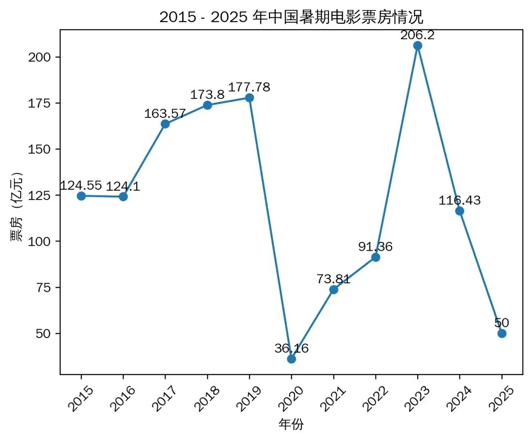 截至7月23日14时,2025年暑期档总票房仅为42.97亿元——距离整个档期过半,尚未突破50亿大关。