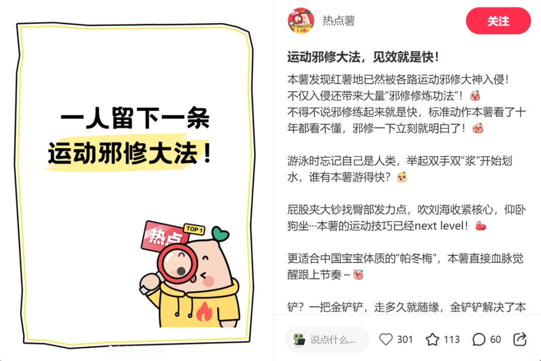 平台通过#兴趣邪修 、#邪修减肥 等话题标签和个性化推荐,打造了一个无压力、无评判的“生活实验场”,年轻人可以毫无顾忌地分享自己的创意和经验。
