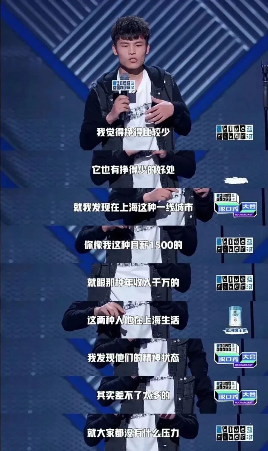 他的形象和段子里透露出一种介于城市与乡村之间的气质,是许多从小地方到大都市打拼的年轻人的缩影。