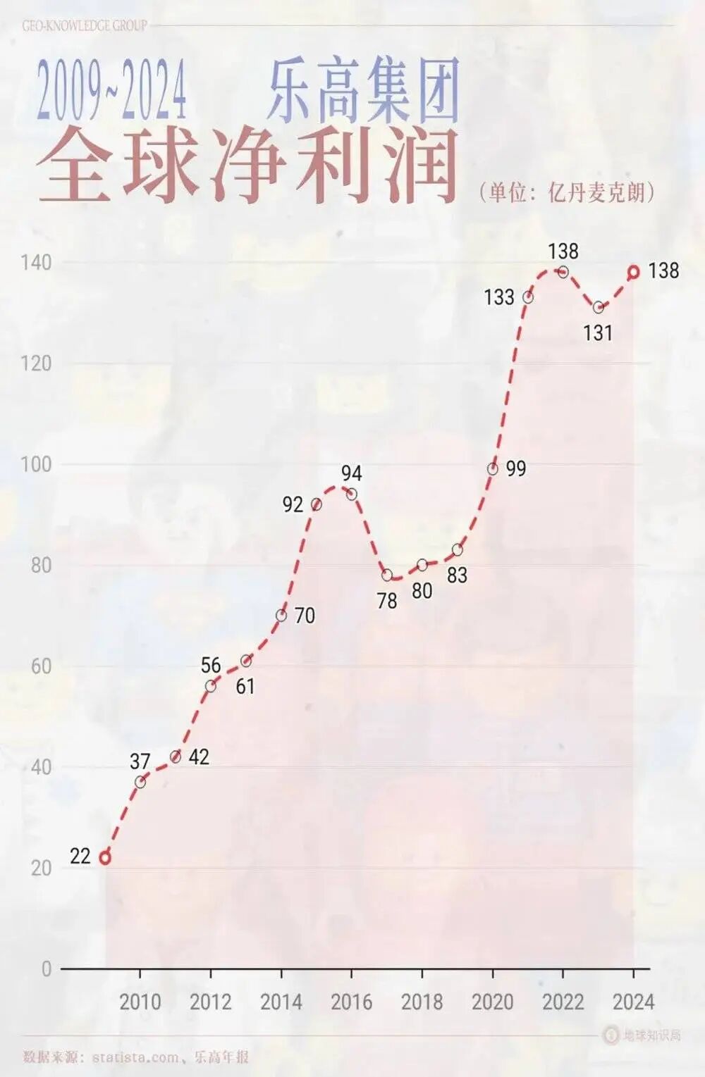 比如乐高,这几年的营收就跟开了印钞机一般:2024年全年,乐高营收增长13%,来到743亿丹麦克朗(约合人民币831亿),净利润则高达138亿丹麦克朗(约合人民币154亿),双双创历史新高。
