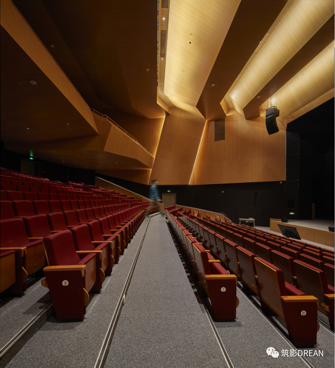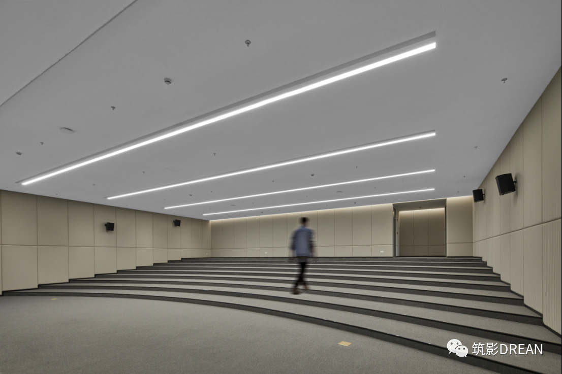 见光不见灯:在这个多功能厅中,灯光设计是隐蔽的,观众看不到明显的灯具。光线似乎是从无处而来,使整个空间明亮而柔和,同时又不会分散观众的注意力。这种设计让人感觉好像光线是自然而然地存在的。