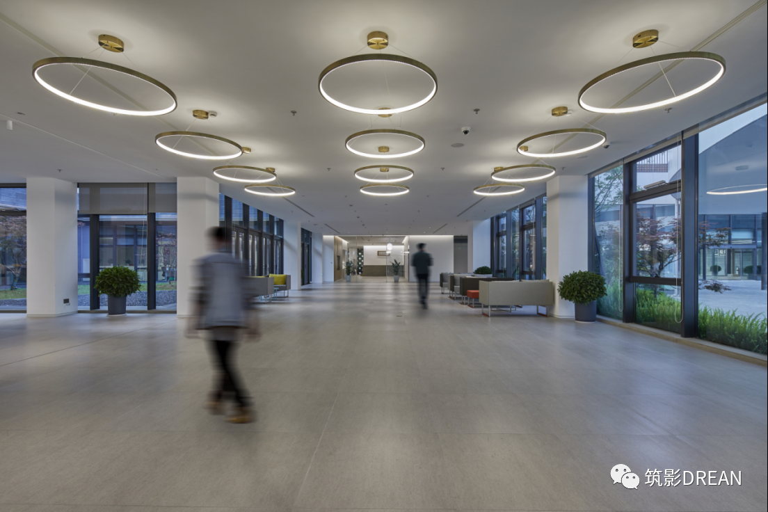 公共区域照明环形设计以商业形象风格为特点,灰色和金色是主要色调,灯光采用高调照明,室内主要的环形照明装置采用了浅灰色和暗金色的风格,展现了永恒的优雅和极简主义的宁静。