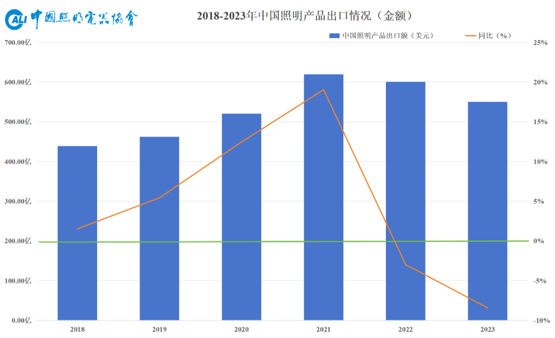 受外贸环境的整体影响,叠加供应链调整加速等外部不利因素干扰,2023年我国照明行业出口总额约563亿美元,同比下降7%,整体态势承压下行;但出口产品的结构持续优化,新技术产品出口增长,新兴市场发展显著。