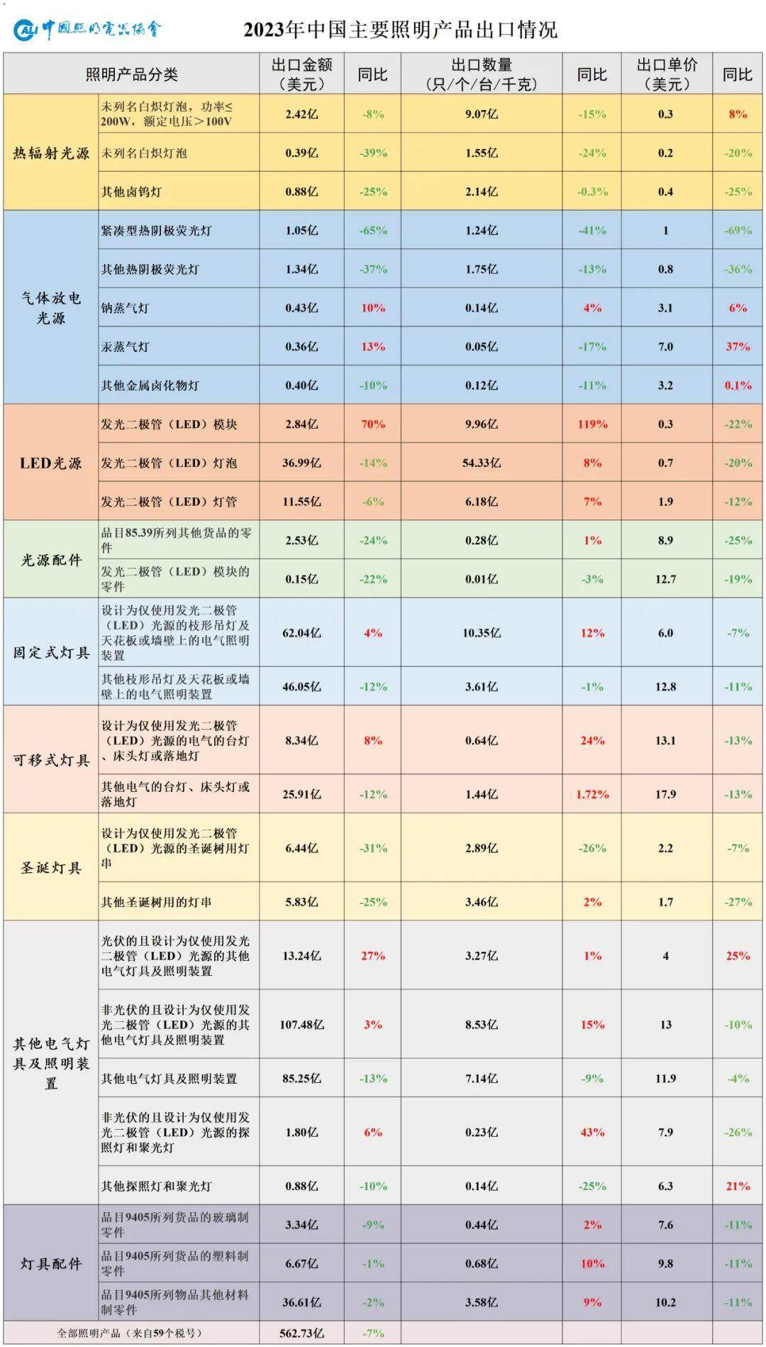 从整体来看,2023年我国照明行业出口呈现了以下几方面特点: