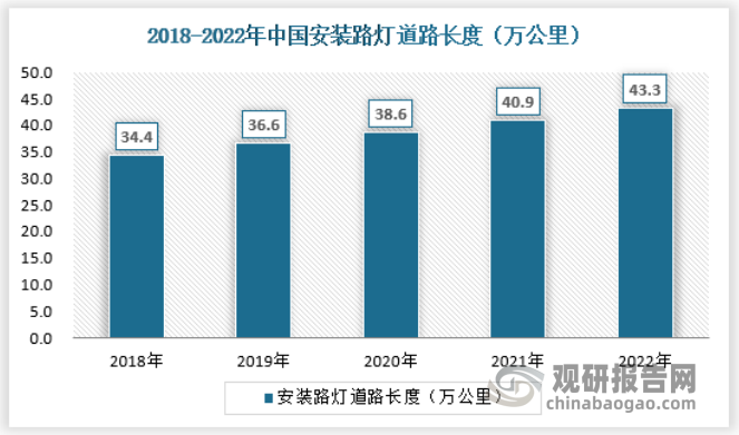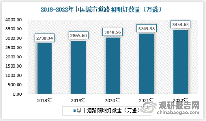 根据住建部数据:中国城市道路照明灯数量已由2018年的2738.34万盏增加至2021年的3,245.93万盏。我国城市道路长度到了2022年已超过57万公里, 安装路灯道路长度43.3万公里左右,道路照明用灯逾3440万盏。
