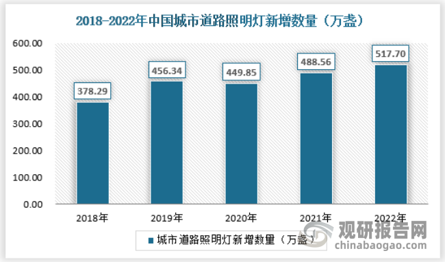 2022年我国平均每年需新建和更换路灯数量达500多万套,具体如下: