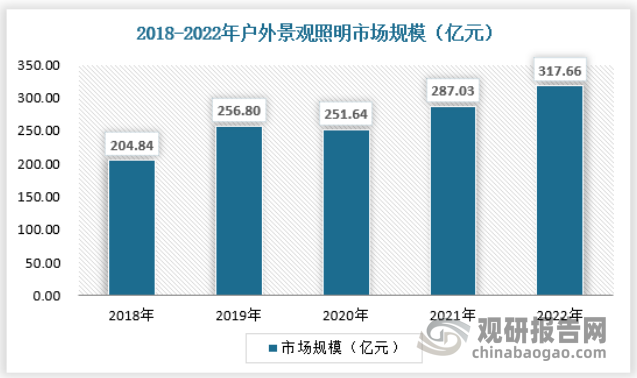 2022年我国户外景观照明市场规模为317.66亿元,具体如下: