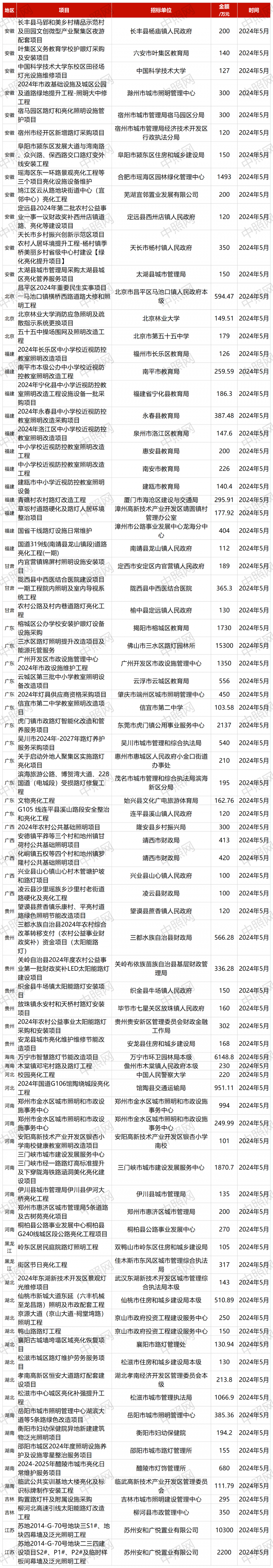 为了加快经济恢复,各个地方政府相继出台政策扶持,随之与照明相关的项目源源不断地发布。