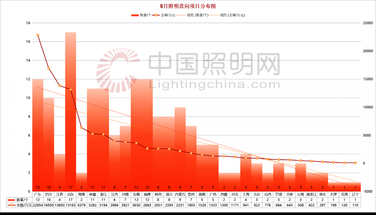 通过上述的数据看到,各个地方政府都加大预算投入,致力于城市照明的升级改造。尤其在道路照明建设方面,地方政府更是加大力度推进,所以看到仅仅5月就投入超6亿经费用于道路照明的建设。而在景观照明建设方面,也投入超3亿。按照当前的发展情况来看,下半年道路照明市场的发展前景相当可观。
