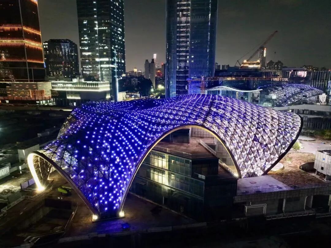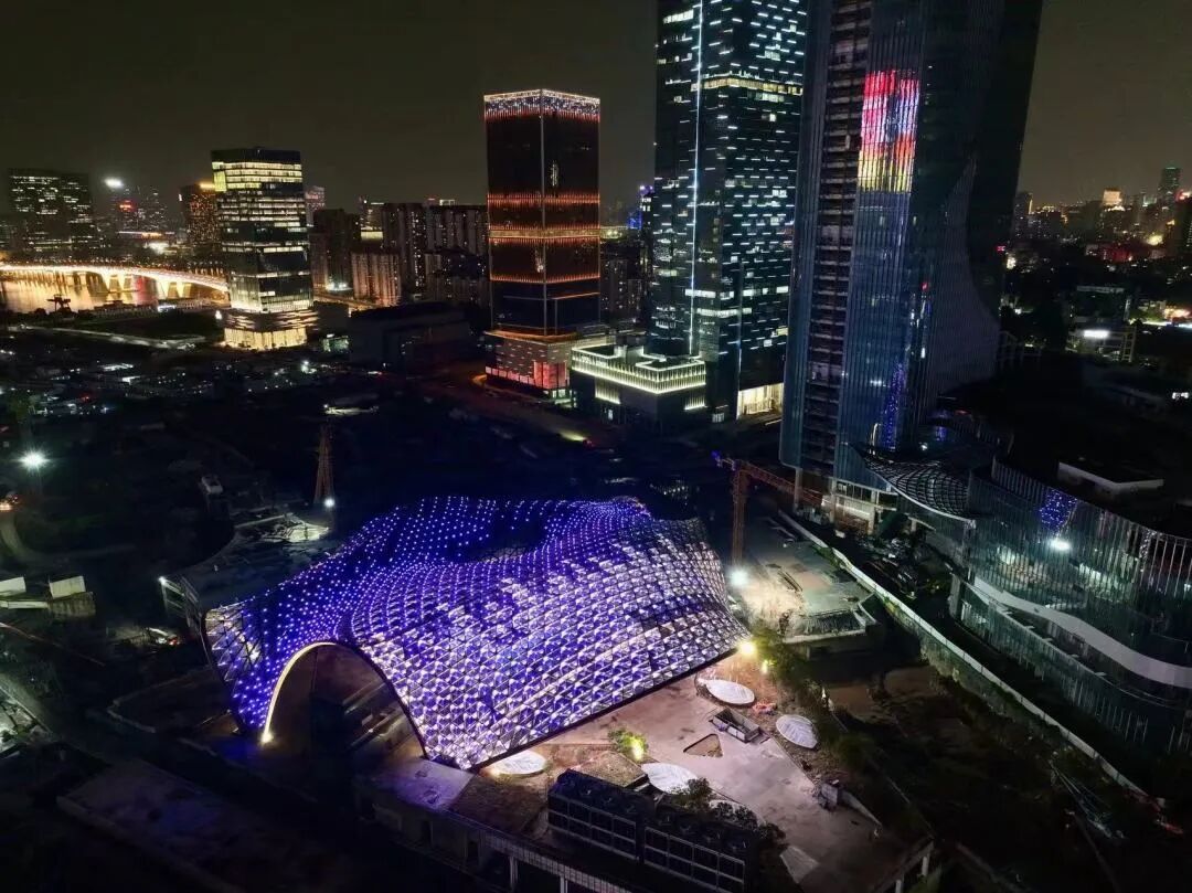 项目围绕金融城广场网壳屋盖,结合媒体立面、LED大屏、建筑灯光、广场投影组成多维立体的沉浸体验。