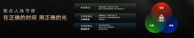 它同时结合智能控制和混光算法,从行为、场景、时间、空间四大维度动态优化光环境对人生活方式的智慧适配,帮助用户真正实现在正确的时间用正确的光。