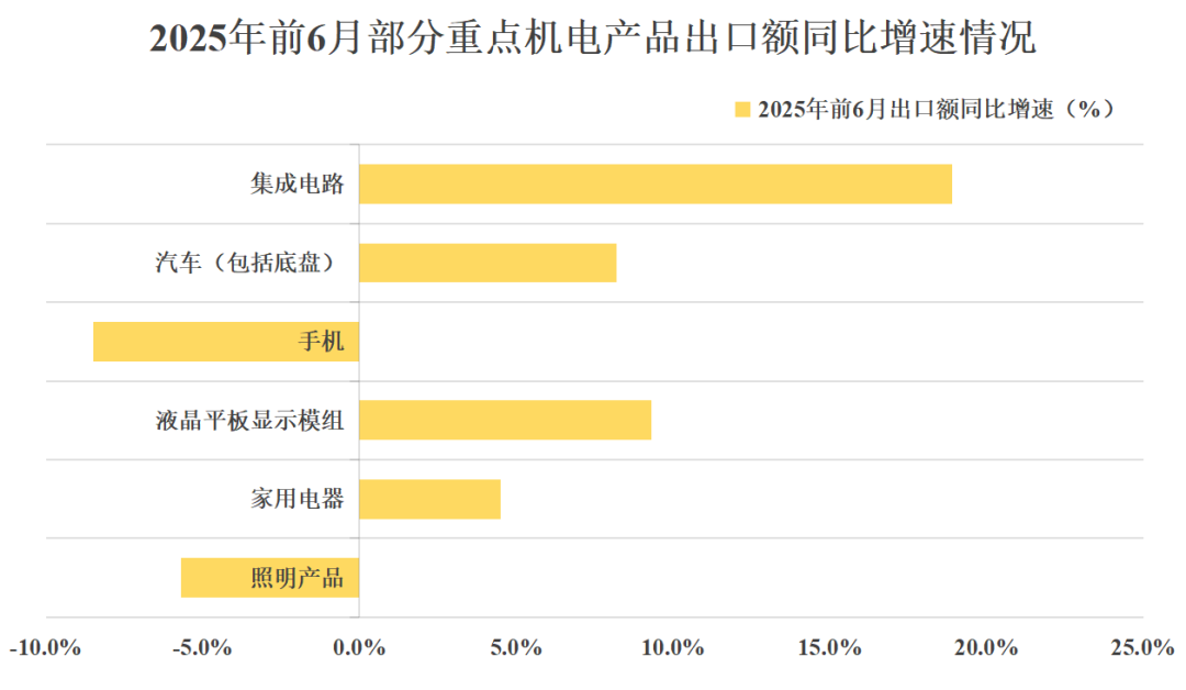 2025年上半年,照明行业出口表现整体偏弱。海关数据显示,1-6月照明产品累计出口总额约为258亿美元,同比下降约6%。照明产品今年前6月累计出口额增速为负,在机电类12项重点出口产品中,仅略好于手机产品。今年上半年无论是整体出口规模还是同比增速,均创下近五年新低。