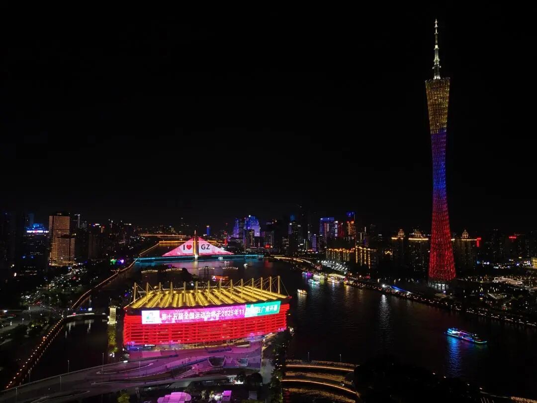 科技赋能光影盛宴,广州地标璀璨亮灯共迎十五运会百天倒计时