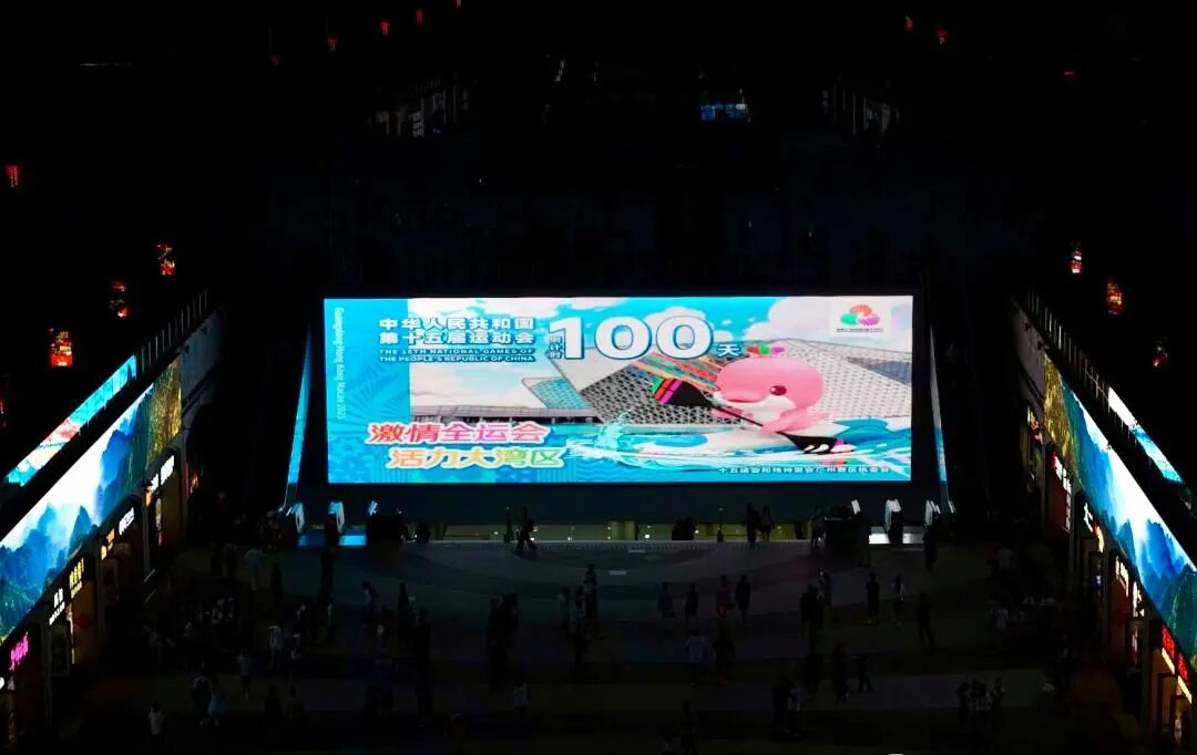 花城广场户外大屏: 作为城市客厅的重要窗口,传递全运信息。